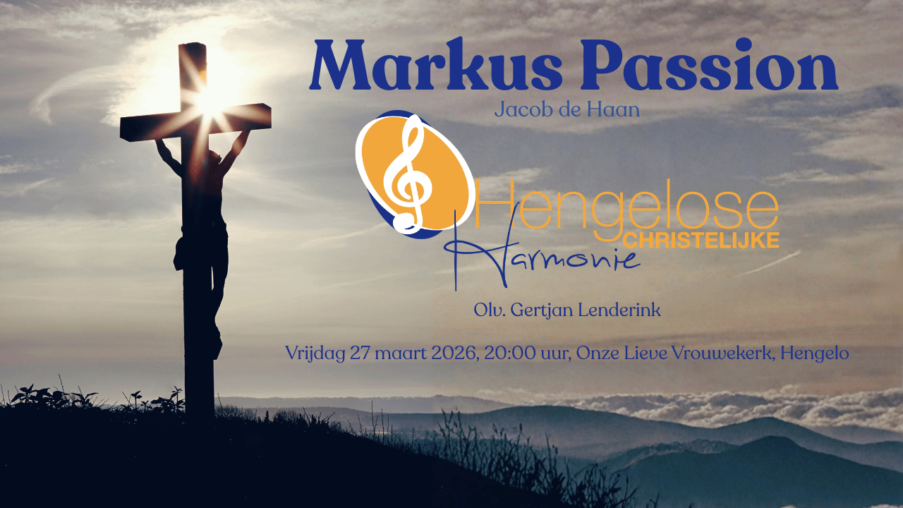 De Hengelose Christelijke Harmonie voert op vrijdag 27 maart 2026 om 20:00 uur de Markus-Passion van de Nederlandse componist Jacob de Haan uit in de Onze Lieve Vrouwekerk in Hengelo. Het orkest staat onder leiding van dirigent Gertjan Lenderink.
